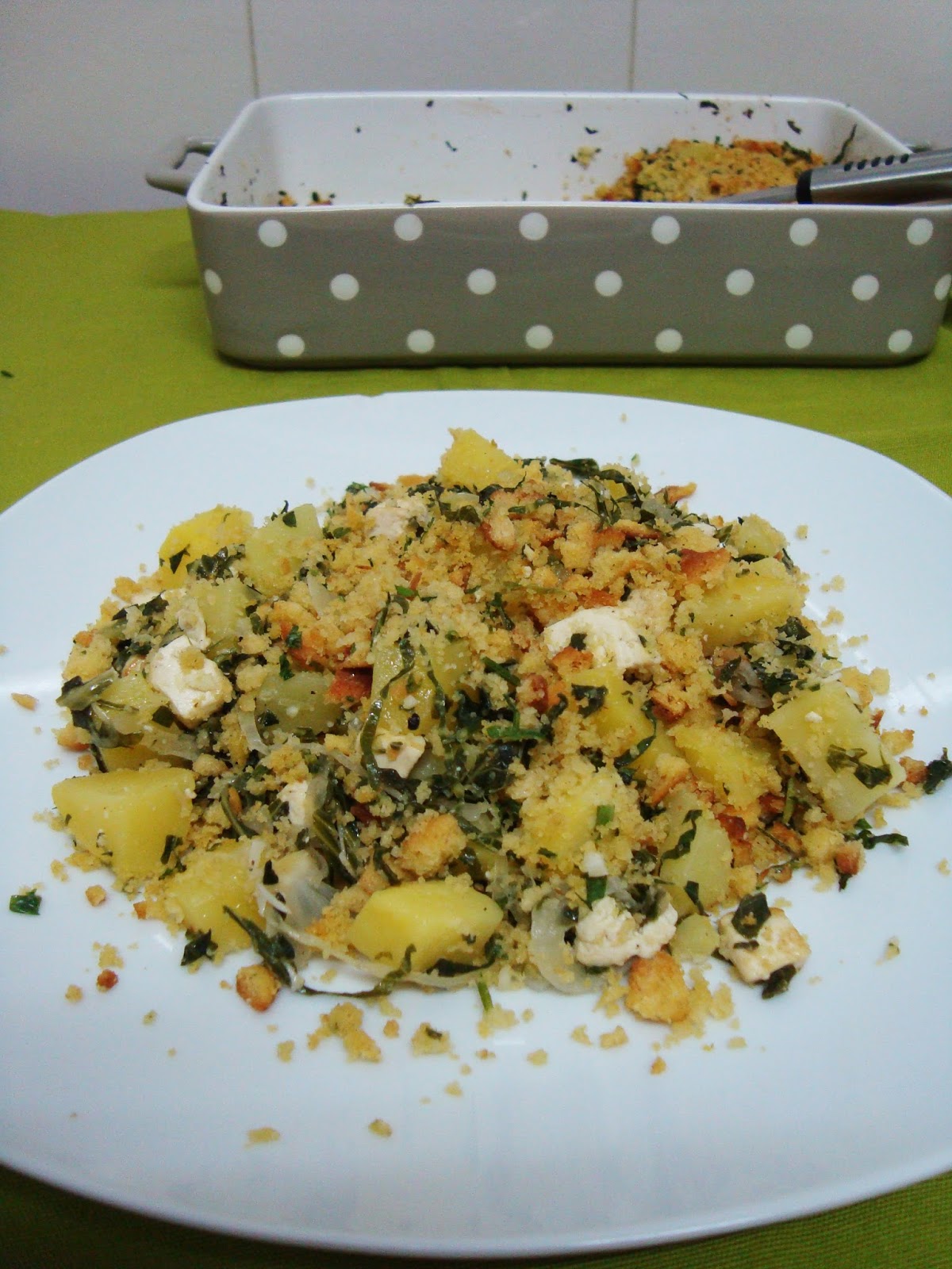 - 1/3 chávena de pão ralado integral, ou pão ralado com ervas.